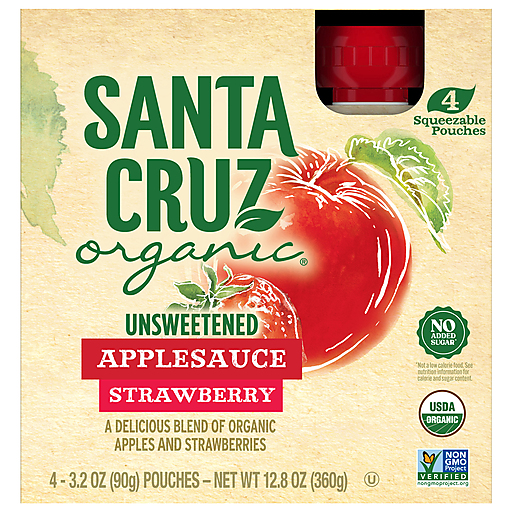 Santa Cruz Organic Unsweetened Strawberry Applesauce 4 ea