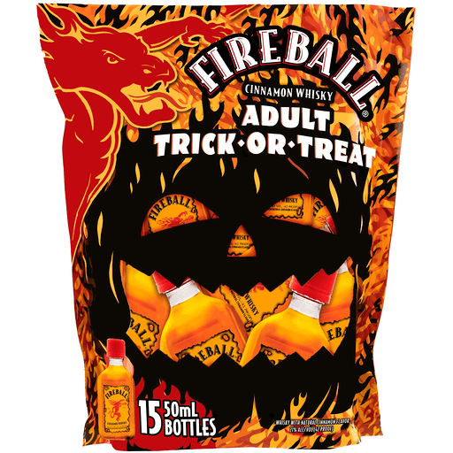 Fireball Cinnamon Whiskey Adult Trick or Treat Bag, 50ml Plastic Bottles, 15 Count, 42 Proof