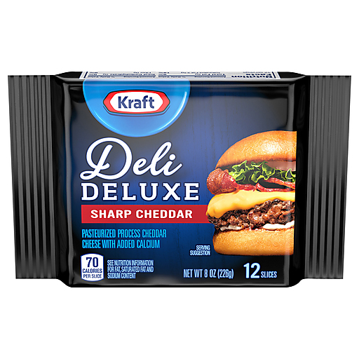 Bring on the bold. Kraft Deli Deluxe Sharp Cheddar Cheese Slices are the perfect way to make your meals extraordinary with big cheese energy. Seriously sharp, our cheddar slices are bursting with bright, tangy flavor and a super smooth texture that elevates any dish. Individually sliced, our delicious sharp cheddar cuts down the prep time for an easier cooking and eating experience. Serve sensational cheese and crackers for a snack, or build a better burger with a slice for a mouthwateringly good melt. Each smooth slice is ready to sharpen up any dish. Try a new take on your turkey club sandwich, or make yourself a crafty grilled cheese creation. For optimal flavor, keep our 8-ounce package of 12 sharp cheddar cheese slices in the fridge until ready to use and enjoy.