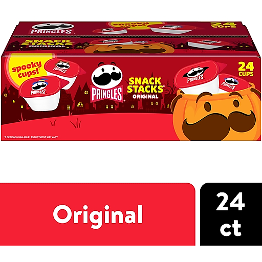 Enjoy the crisp, crunchy, hit-the-spot taste of potato crisps chips in fun Halloween packaging. Insanely light, crispy and never greasy, they’re bursting with salty, savory flavor and feature Halloween Mr. P on each cup. These conveniently sized small cups make it easy to grab and go. For a limited time only, create snacking moments wherever and whenever this Halloween season; Grab a cup as a pick-me-up for after school fall snacks or pack into school lunch boxes. Bring these portable snacks to Halloween classroom parties and add them to your bowl of candy for trick-or-treaters. Stash this anytime snack in your pantry or work desk. Turn up the flavor and fun among family and friends with these portable cups with potato crisps chips packed with edge-to-edge flavor. You won't want to miss out on all the spooky possibilities with each stack of Halloween Pringles. Get your hands on Pringles potato crisps chips for an exciting Halloween treat that keep you coming back, stack after stack. Snack 'em before they're gone!